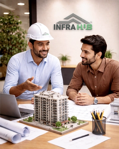 INFRAHUB is Eastern India’s premier engineering expert services and material supply company for residential and commercial projects. Operating across West Bengal, Jharkhand, Odisha, Bihar, and Assam, INFRAHUB uniquely solves complex structural challenges for both new construction and existing buildings.